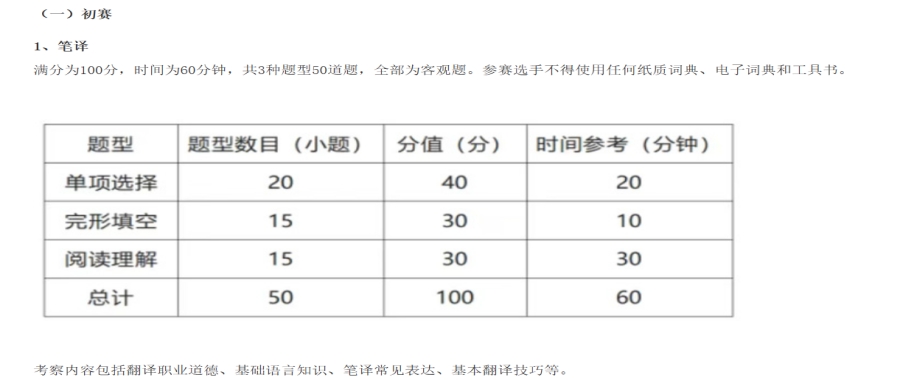 为贯彻落实中央有关部门关于加强翻译人才队伍建设的有关精神,加强中外文化交流合作,鼓励用外语讲述中国故事,通过赛事选拔更多优秀翻译人才,提升我国国际传播能力,加强中外青少年文化交流,培养一批适应新时代国际传播需要的专门人才队伍,经批准,外国语言文化学院今年决定继续组织参加由全国翻译专业学位研究生教育指导委员会和中国外文局翻译院联合主办的开棣(CATTI)杯全国翻译大赛,现将有关事宜通知如下: