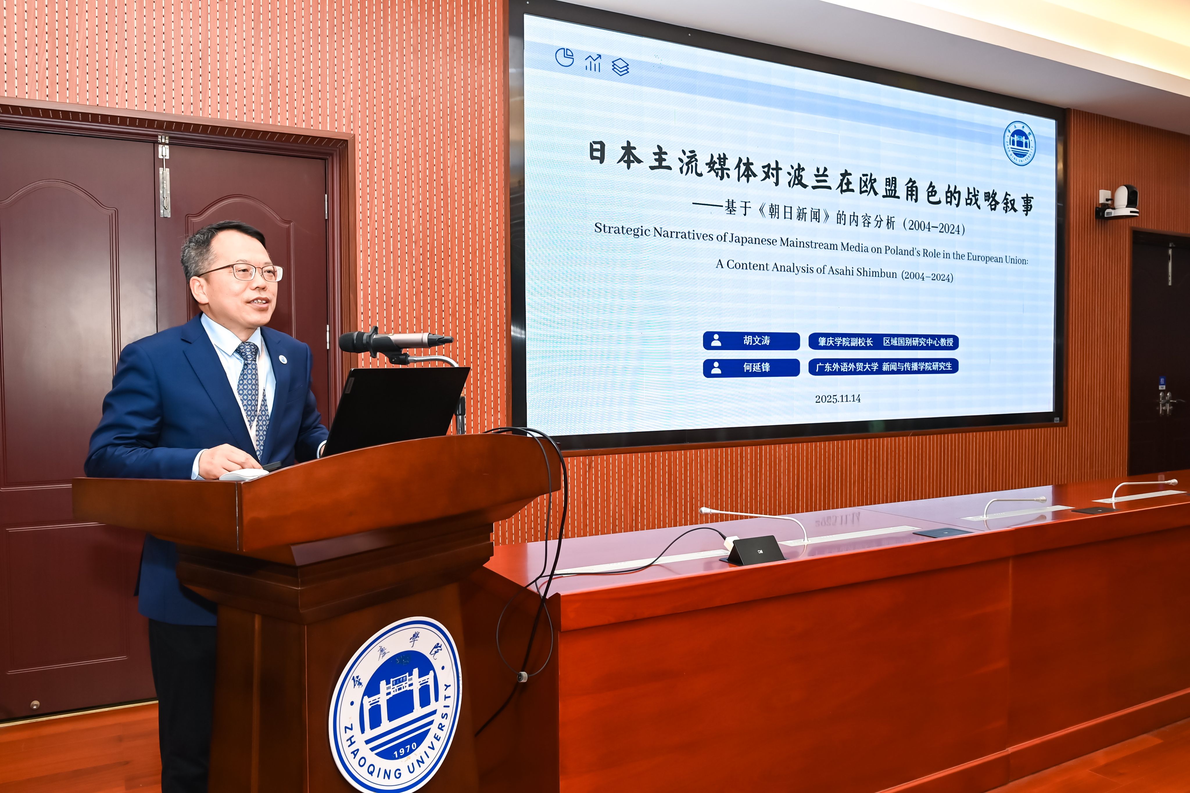 2025年11月14日至16日,由肇庆学院与广东外语外贸大学联合主办的2025年“区域国别学视域下中东欧研究”国际学术会议在肇庆和广州两地隆重举行,此次盛会恰逢中国与欧盟建交50周年、肇庆学院办学55周年重要历史节点。波兰亚当·密茨凯维奇大学副校长米哈乌·巴纳沙克(Michał Banaszak)教授,波兰亚当·密茨凯维奇大学副校长拉法尔·维特科夫斯基(Rafał Witkowski)教授,保加利亚索菲亚大学副校长玛利亚·斯多以切娃(Maria Stoicheva)教授,广东省社科联二级巡视员何方俊,教育部国别和区域研究工作秘书处主任、中国中东欧国家智库合作网络副理事长、北京语言大学外国语言文化学院院长、国别和区域研究院院长罗林教授,澳门城市大学副校长叶桂平教授,广东外语外贸大学副校长何传添教授及来自波兰华沙大学、波兰雅盖隆大学、韩国国立全北大学、中国社会科学院、北京外国语大学、中国传媒大学、首都师范大学、上海国际问题研究院、同济大学、上海外国语大学、华南师范大学、西安外国语大学、大连外国语大学、宁波大学等国内外高校、科研机构120余名学者参会。