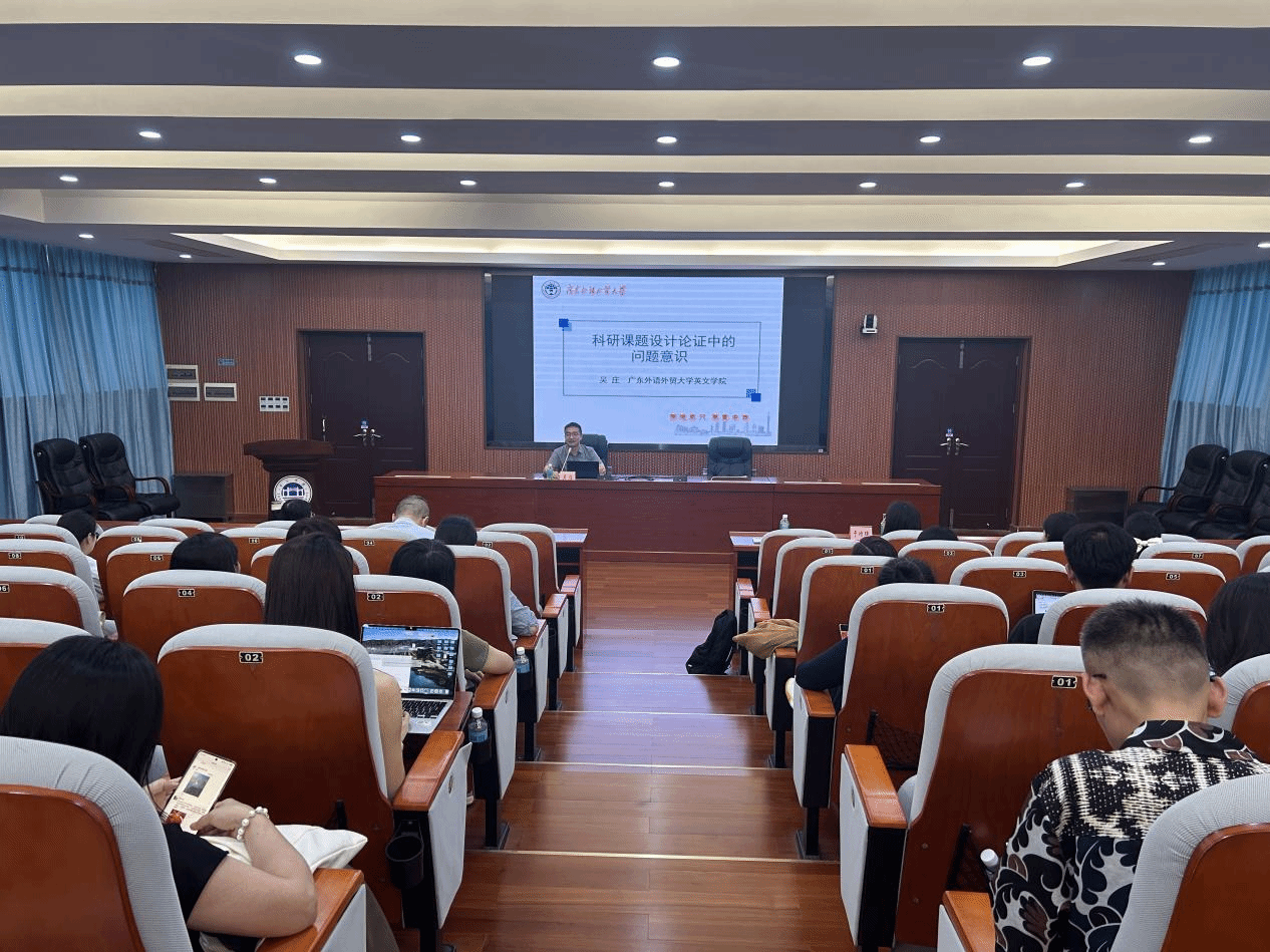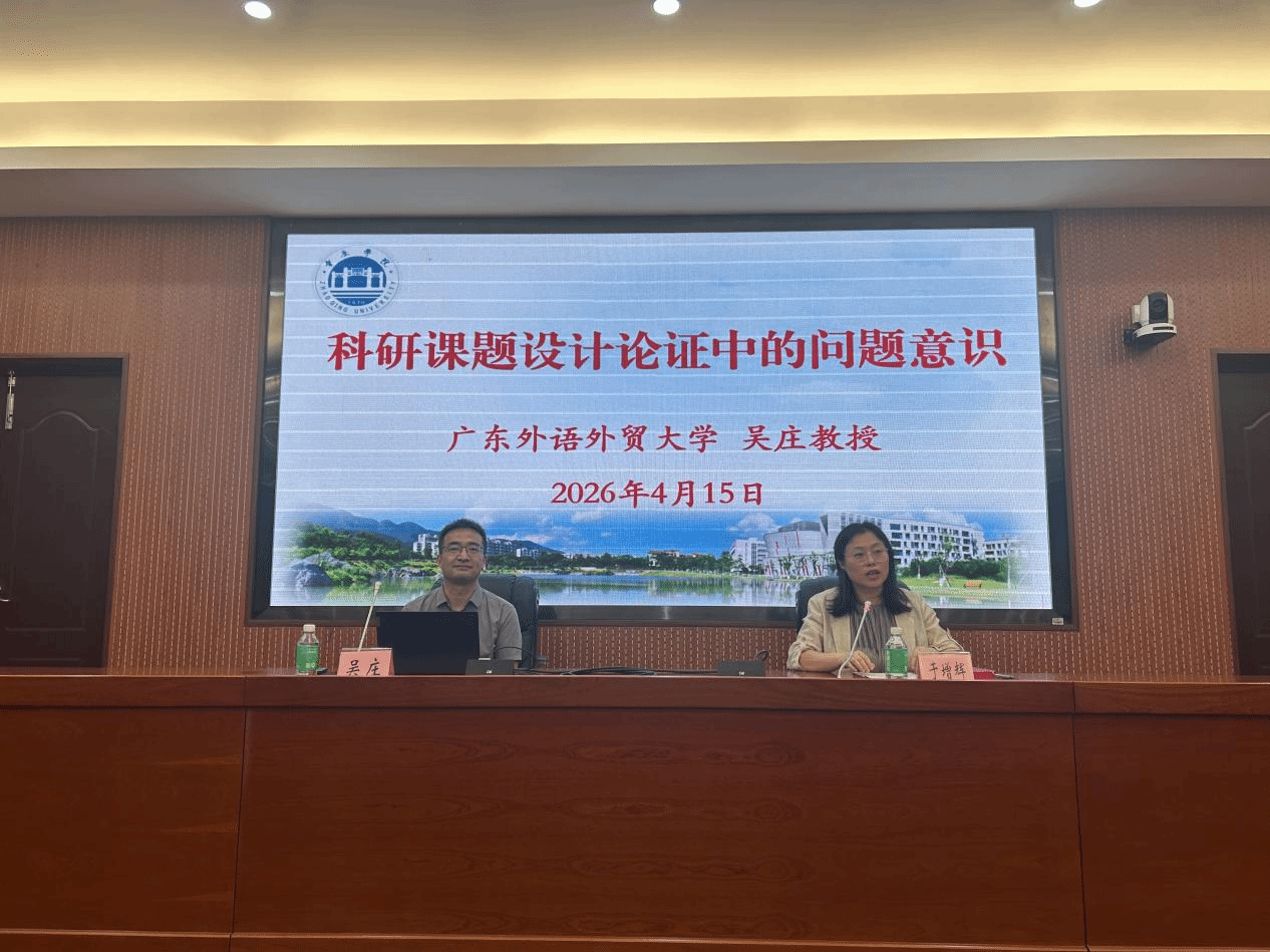 4月15日下午,外国语言文化学院在行政楼第二会议室举行了《科研课题设计论证中的问题意识》专题讲座。学院邀请广东外语外贸大学英文学院博士生导师吴庄教授担任主讲嘉宾,学院全体教师及全体研究生参加了讲座,讲座由主持行政全面工作的副院长于增辉主持。