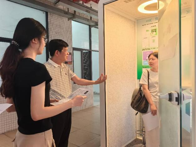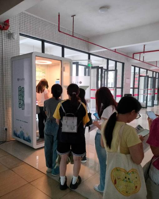 活动现场,紫荆书院的智能面试舱成为学生体验的重点。同学们一边等候智能舱使用,一边观看求职面试短视频,提前学习答题技巧;进入舱内沉浸式体验AI简历优化服务,凭借其便携高效的优势,快速发现简历整体问题,明确优化与完善方向。卢咏书记与学生亲切交流,了解大家的收获和心得,鼓励同学们要积极参与实践机会,通过多练习提升求职能力。
