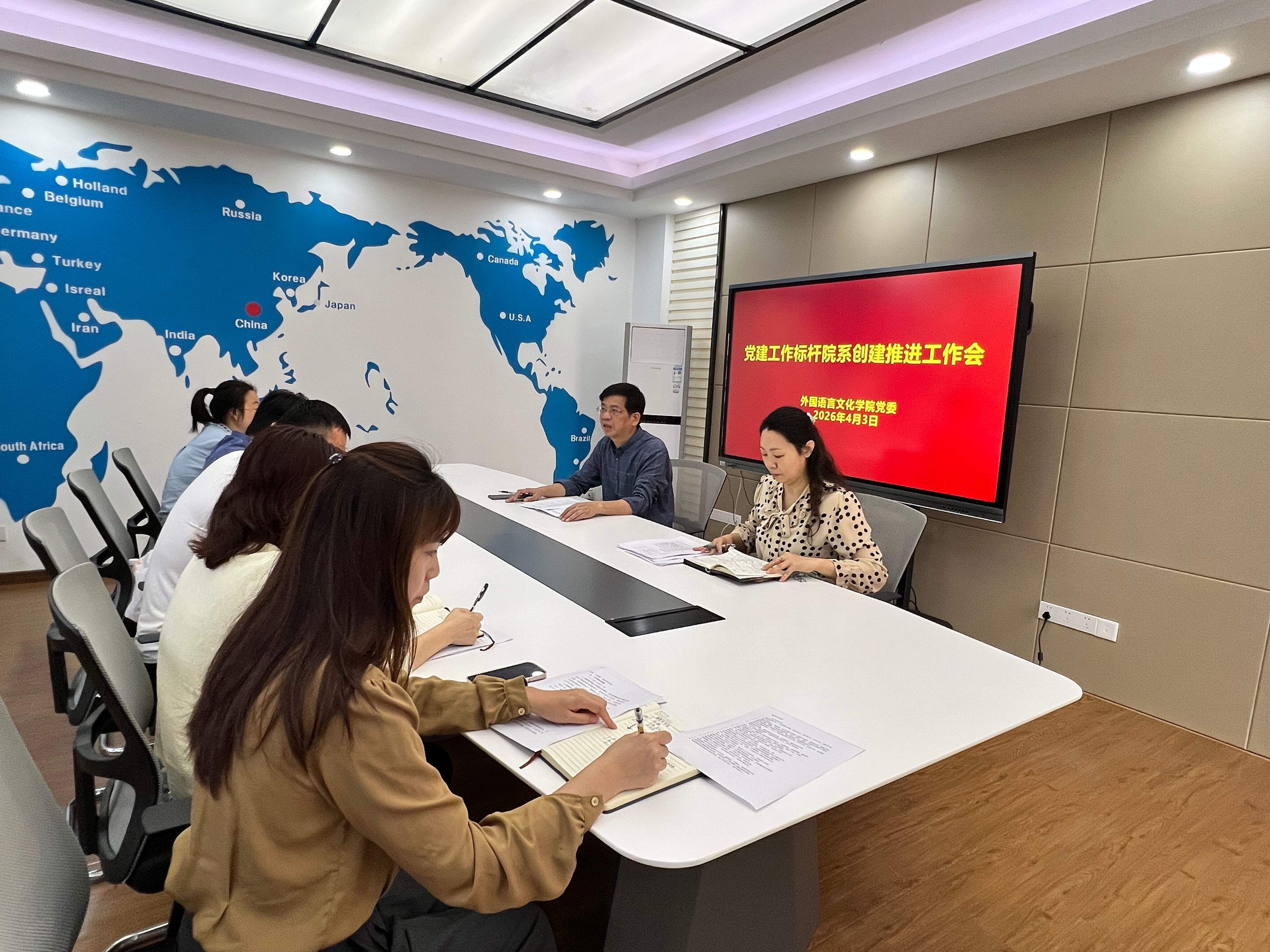 为推进省级标杆院系创建,落实立德树人根本任务,4月3日上午,学院召开党建工作标杆院系创建推进工作会。学院党委书记卢咏、党委副书记杨琼、全体辅导员参会,共同梳理年度工作思路,明确下一阶段推进措施。