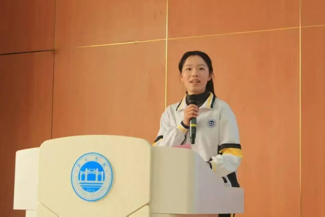 校学生会主席团成员卢欣雨同学对上一学年我院学生会在思想引领、深化改革、权益维护、活动开展等方面的工作成果予以肯定,并代表校学生会提两点愿景:第一要以习近平新时代中国特色社会主义思想为指导,始终明确学生会是党领导下的主要学生组织,始终保持和增强政治性、先进性和群众性;第二要恪守学生本分、牢记服务宗旨、永葆理想情怀、勤勉务实做事、营造平等氛围、摒弃庸俗习气。
